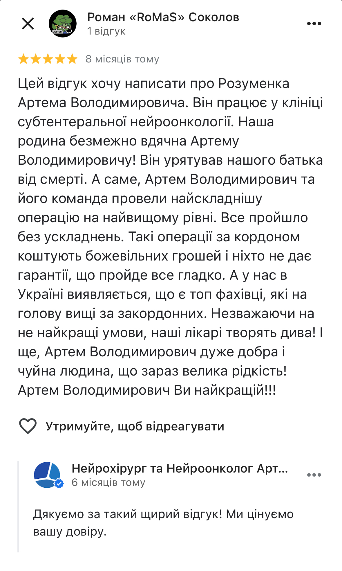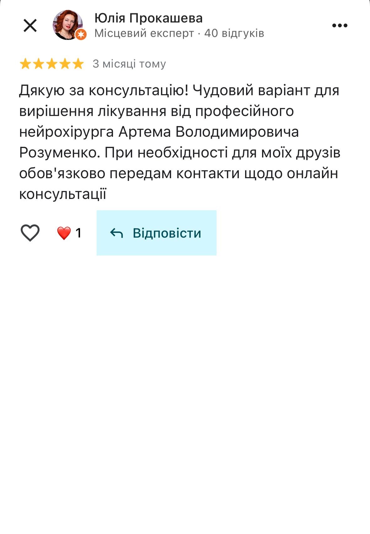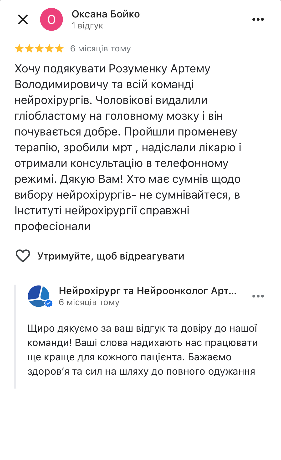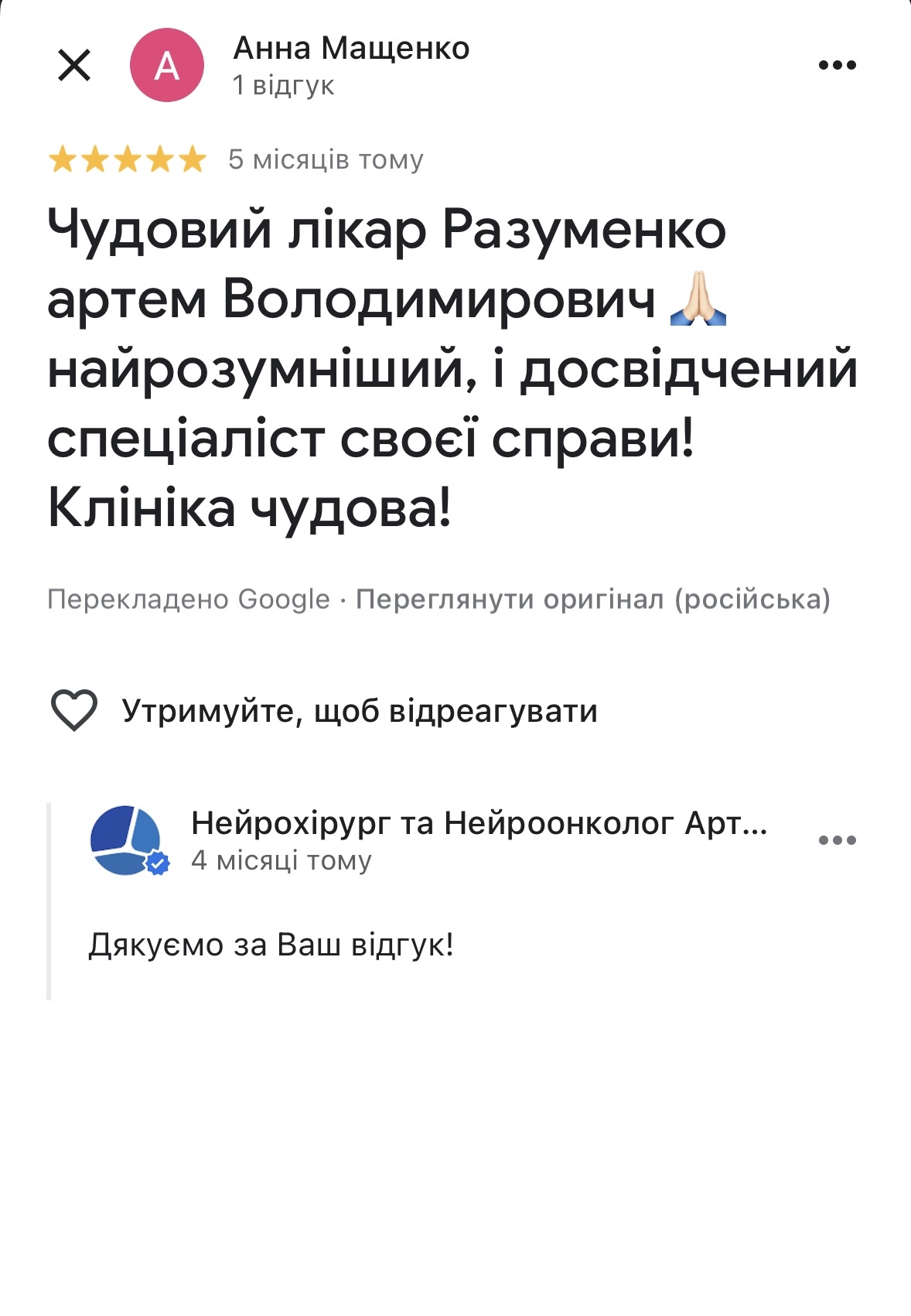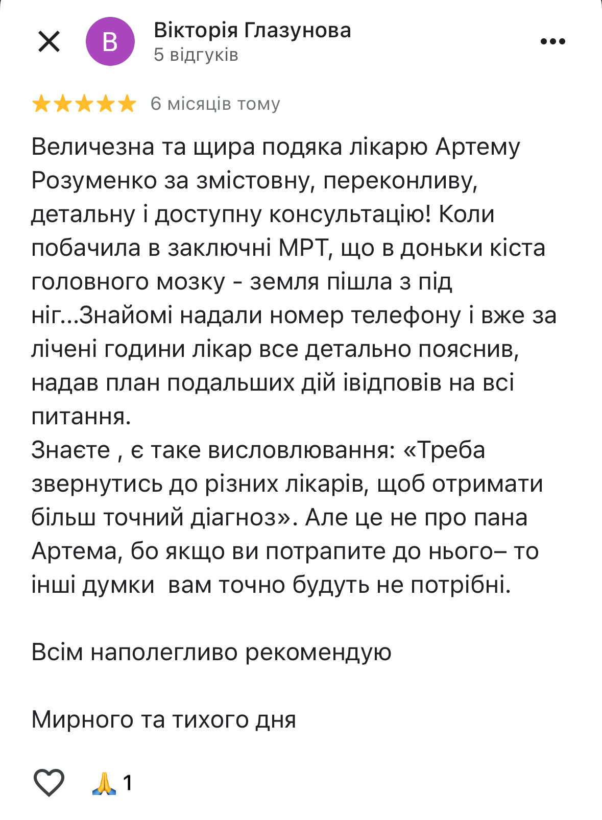 «Ми працювали на міліметри. Але завдяки нейронавігації та точному плануванню — пацієнтка говорить, рухається і повертається до життя вже наступного дня після операції.»Сучасні технології дозволяють оперувати навіть у критично важливих ділянках мозку — без втрати функцій. Головне — діяти вчасно. Можлива консультація в Києві або онлайн. Зв’яжіться з лікарем — без зайвого стресу.